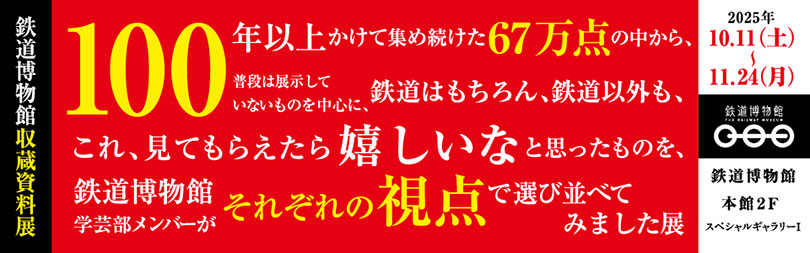 鉄道博物館収蔵資料展「100年以上かけて集め続けた67万点の中から、普段は展示していないものを中心に、鉄道はもちろん、鉄道以外も、これ、見てもらえたら嬉しいなと思ったものを、鉄道博物館学芸部メンバーがそれぞれの視点で選び並べてみました展」