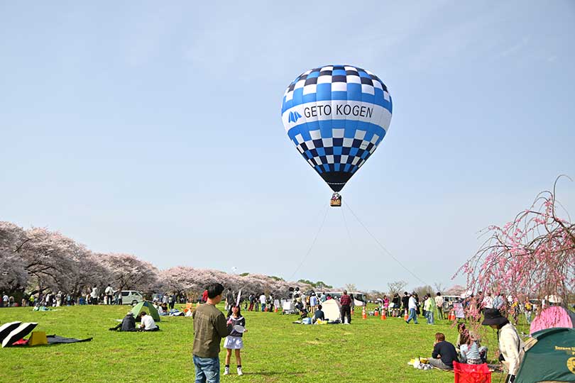 北上川沿いに約2km続く桜並木が主役の「北上展勝地さくらまつり」では、満開の桜の下を進む観光馬車や、広場に係留された熱気球体験など多彩な催しが充実。民俗芸能の公演やライブ・パフォーマンス、夜桜ライトアップまで、一日を通して春のにぎわいを楽しめます。