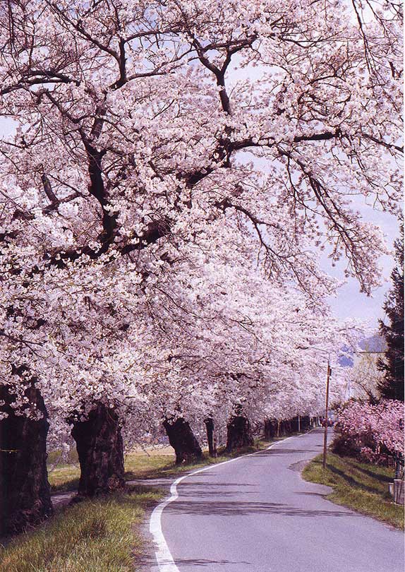 約3kmにわたり約1,000本のシダレザクラが植えられ、数十年の時を経て春風に揺れる〈桜のトンネル〉となっています。ローカル線の記憶を留めた桜並木の中ほどには、この地を走っていた蒸気機関車C11形が保存展示され、絶好の撮影スポットに。どこかノスタルジックな旅情でお花見歩きが楽しめます。喜多方駅から徒歩数分とアクセスも良く、春の鉄道旅にぴったりです。