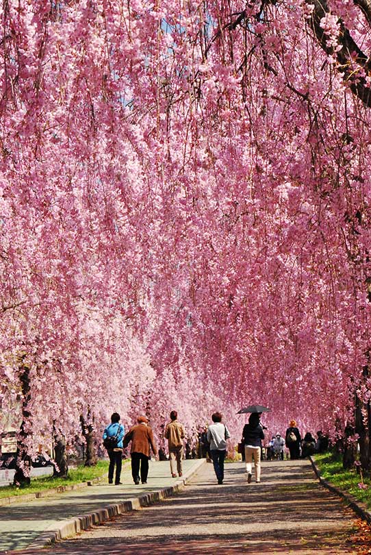 雪深い秋田に春を迎える「角館の桜まつり」。武家屋敷通りのシダレザクラが花開くと、桧木内川堤に約2kmにわたって続くソメイヨシノも順々に咲き始めます。