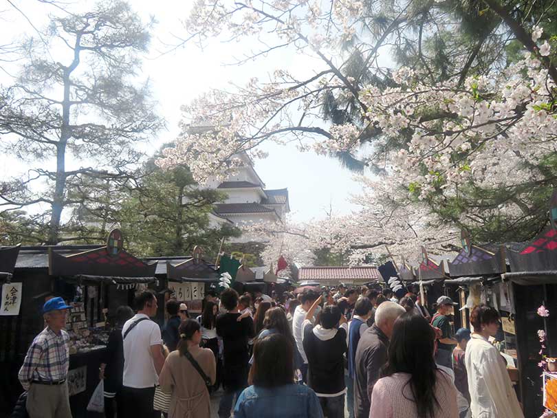 【福島】鶴ヶ城さくらまつり|赤瓦の天守を彩る桜、城下町にぎわう会津の春時間