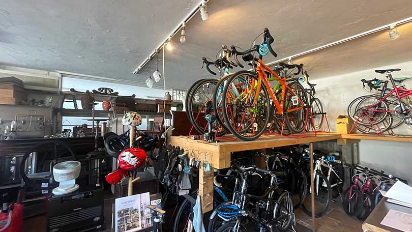 店内には、ロードバイクやクロスバイク、電動アシストサイクルなど多彩なラインナップがズラリ。さっそく旅行気分も高まります。スタッフさんに相談しながら、走りやすい1台を選んでもらえるのでサイクリング初心者の方でも安心ですよ。