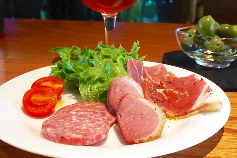 地元のプレミアムワインや日本酒、ローカルブランドの野菜を使った創作料理が並び、地酒とローカルグルメのマリアージュを楽しめる人気スポットです。フードメニューも豊富で、ぜひ注文したいのが自家製ハム・ソーセージ専門店「デリカテッセン山吹」のサラミ・生ハム・カモ燻製。創業300年余の信州味噌蔵「山吹味噌」が手がける、この土地ならではの逸品です。