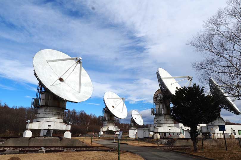 広大な敷地に巨大なパラボラアンテナがいくつも並び、思わず息をのむスケールの風景が広がります。日本最大級の電波望遠鏡が設置された国内でも有数の天文研究拠点で、電波望遠鏡や展示室を見学できます(予約不要・天候やイベントにより変更の場合あり)。